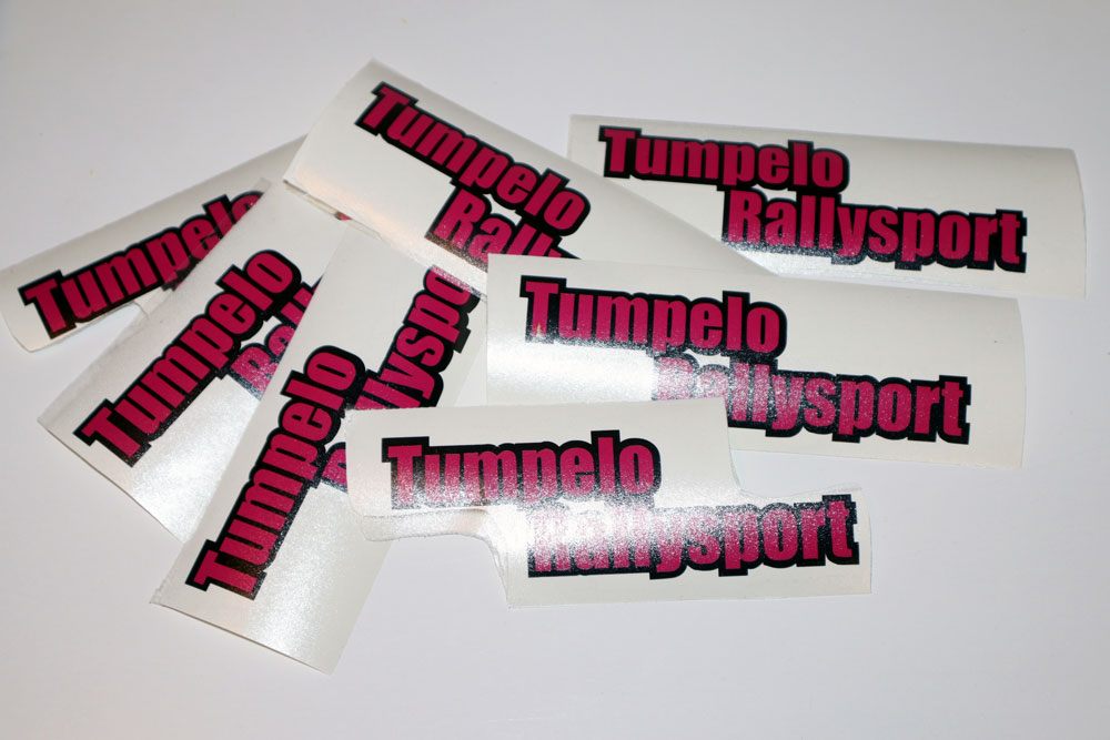 Tue rallitoimintaa ja osoita tukesi! Kuvan mukainen tarra valmistetaan käsityönä ja koska tämä on Tumpelo Rallysport, tarrat eivät välttämättä ole keskenään identtisiä.